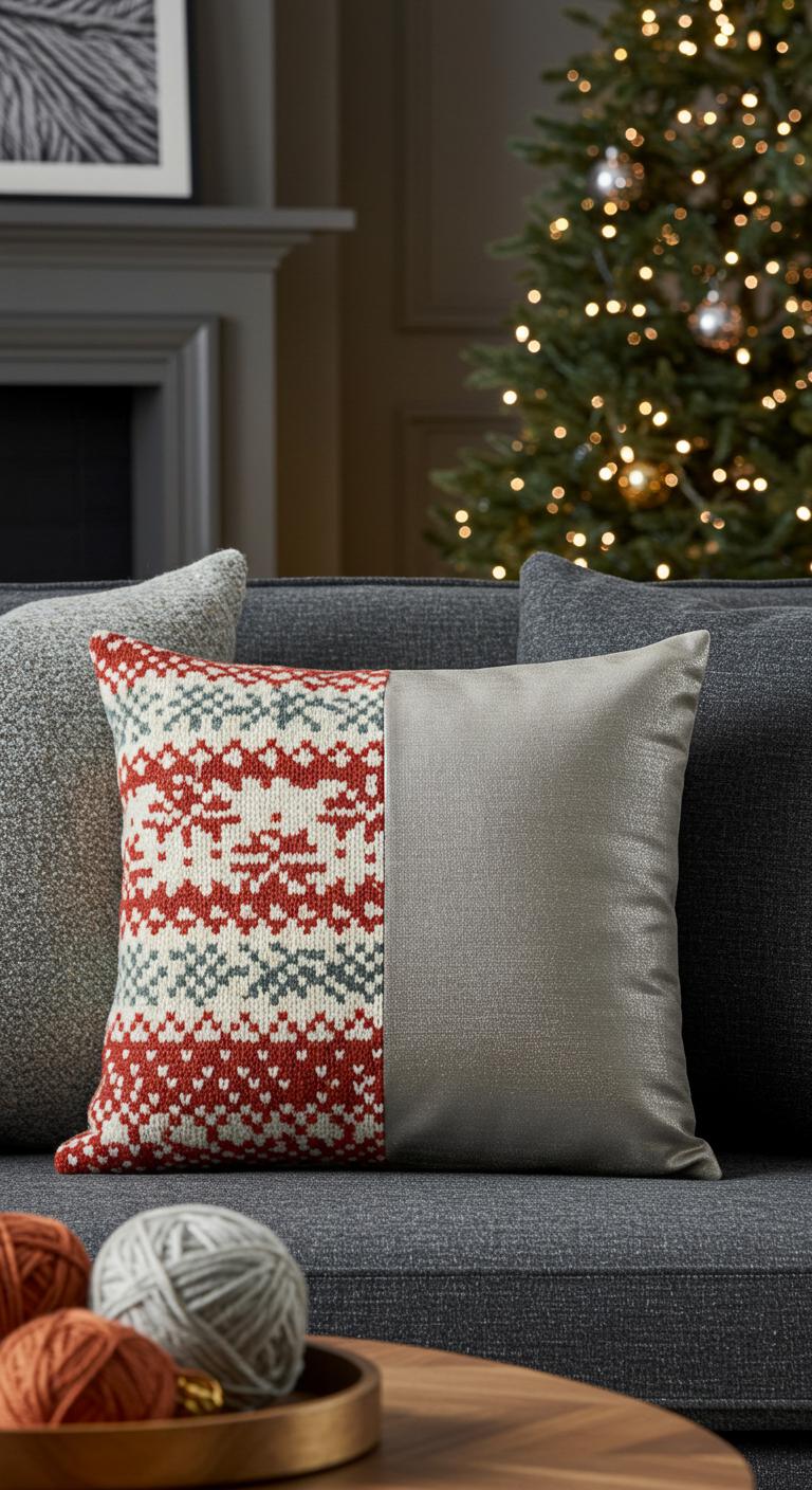 A reversible holiday throw pillow gives you two festive looks in one—flip it from a cozy fair isle front to a minimalist metallic back in seconds, so you can change your decor mood without extra storage.