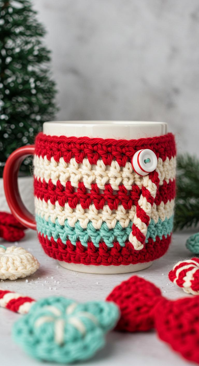 When you wrap your mug in a retro candy cane cozy, you get cheerful stripes, a comfy grip, and vintage flair without fuss.
