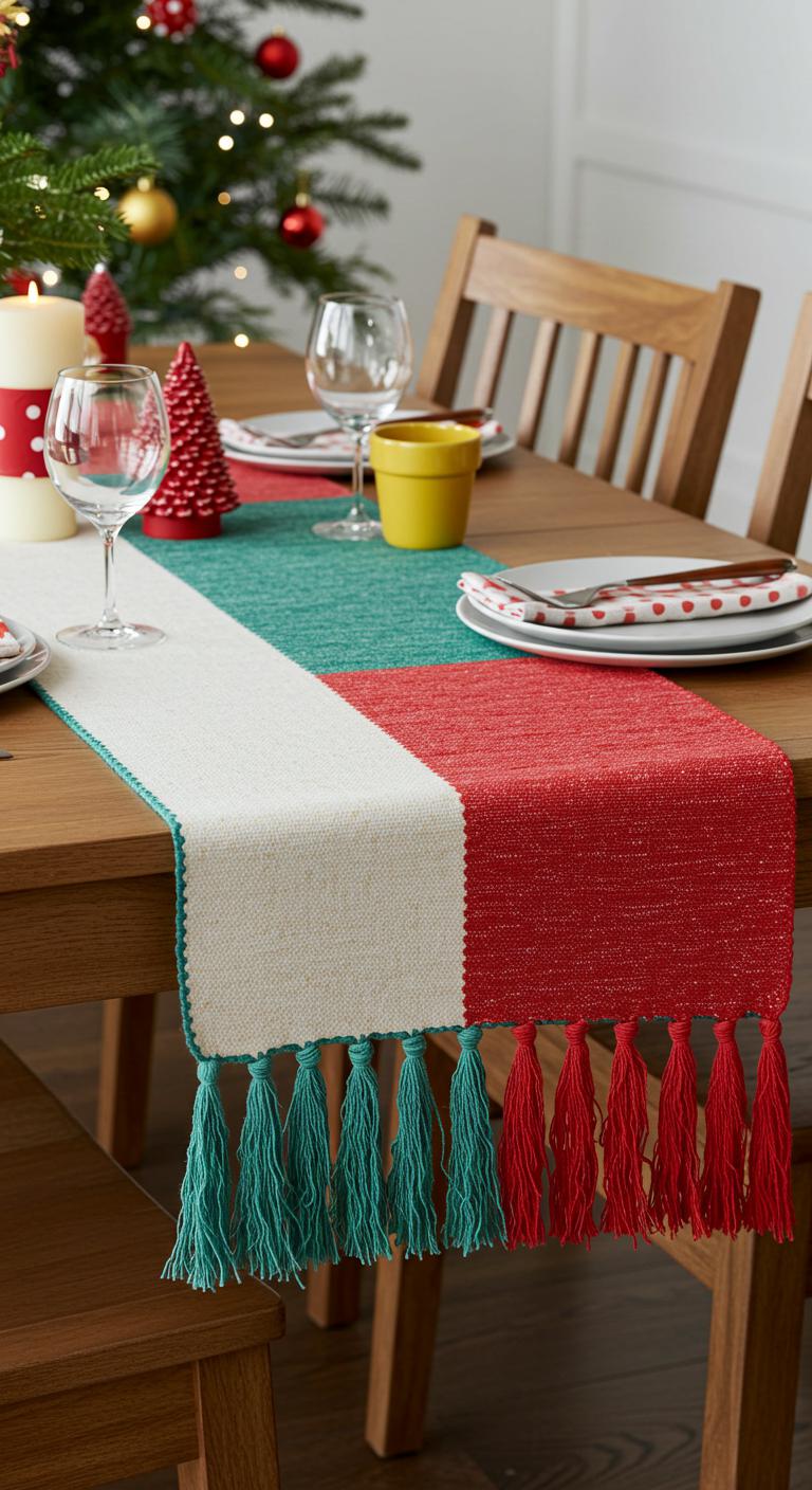 A festive table runner with fringe instantly updates your holiday spread and gives you a quick, handmade focal point; you’ll work simple stitches, color blocks, and playful fringe to match any centerpiece or place setting.