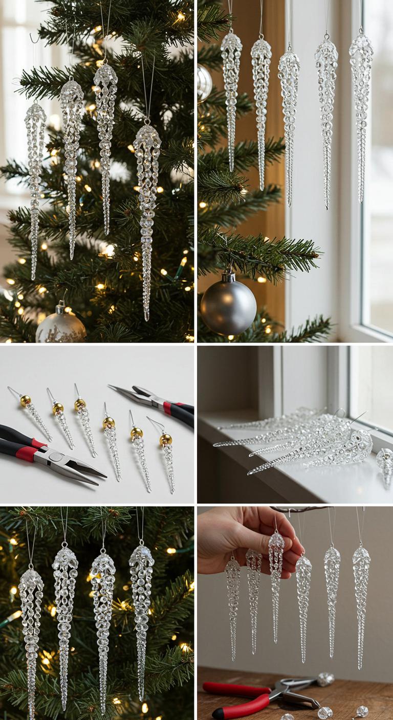 Sleek beaded icicles bring modern sparkle to your tree or windowsill, and you can make them quickly with glass beads, stainless-steel headpins, and a few simple tools.