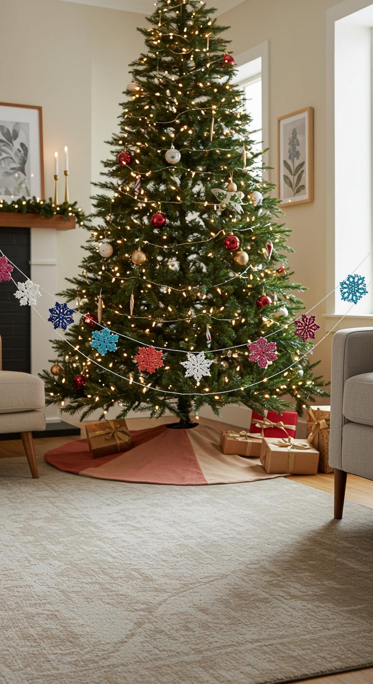 Pair your colorblock tree skirt with a matching Sleek Snowflake Garland to carry that modern vibe up and around the room.