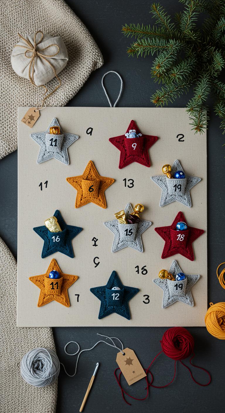 You’ll stitch 24 minimalist stars, assign pockets for small treats, and mix cool neutrals with one accent.