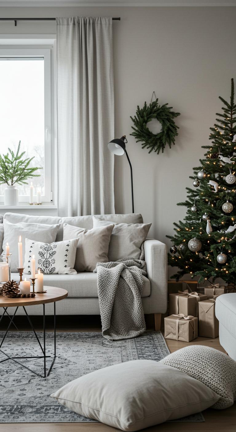 As you embrace the charm of the holiday season, incorporating Scandinavian influences can transform your living room into a serene winter wonderland.