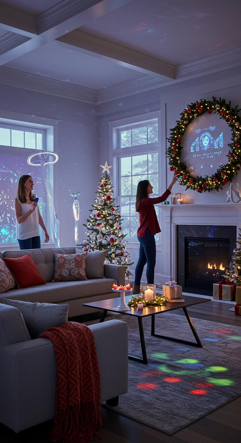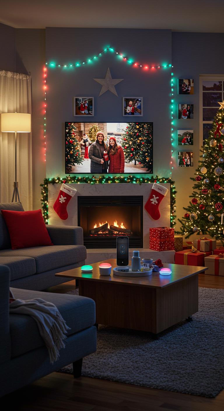 Blending modern technology with holiday cheer can elevate your living room’s festive spirit.