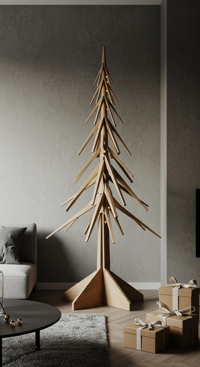 Imagine a tree crafted from sustainable materials, featuring sleek geometric shapes that draw the eye without overwhelming your space.