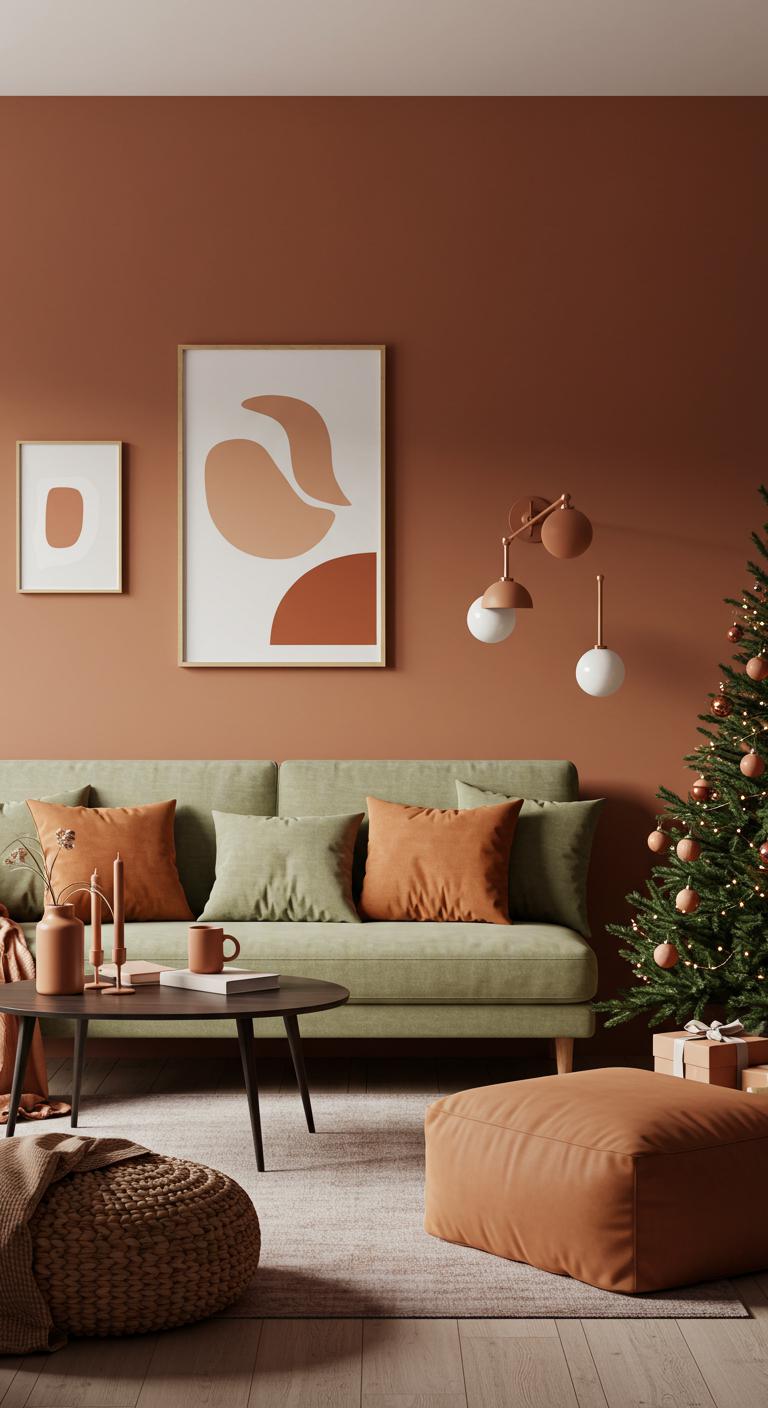 Minimalist designs can beautifully complement the warmth of earthy tones, creating a cozy yet sophisticated atmosphere for your modern living room this holiday season.