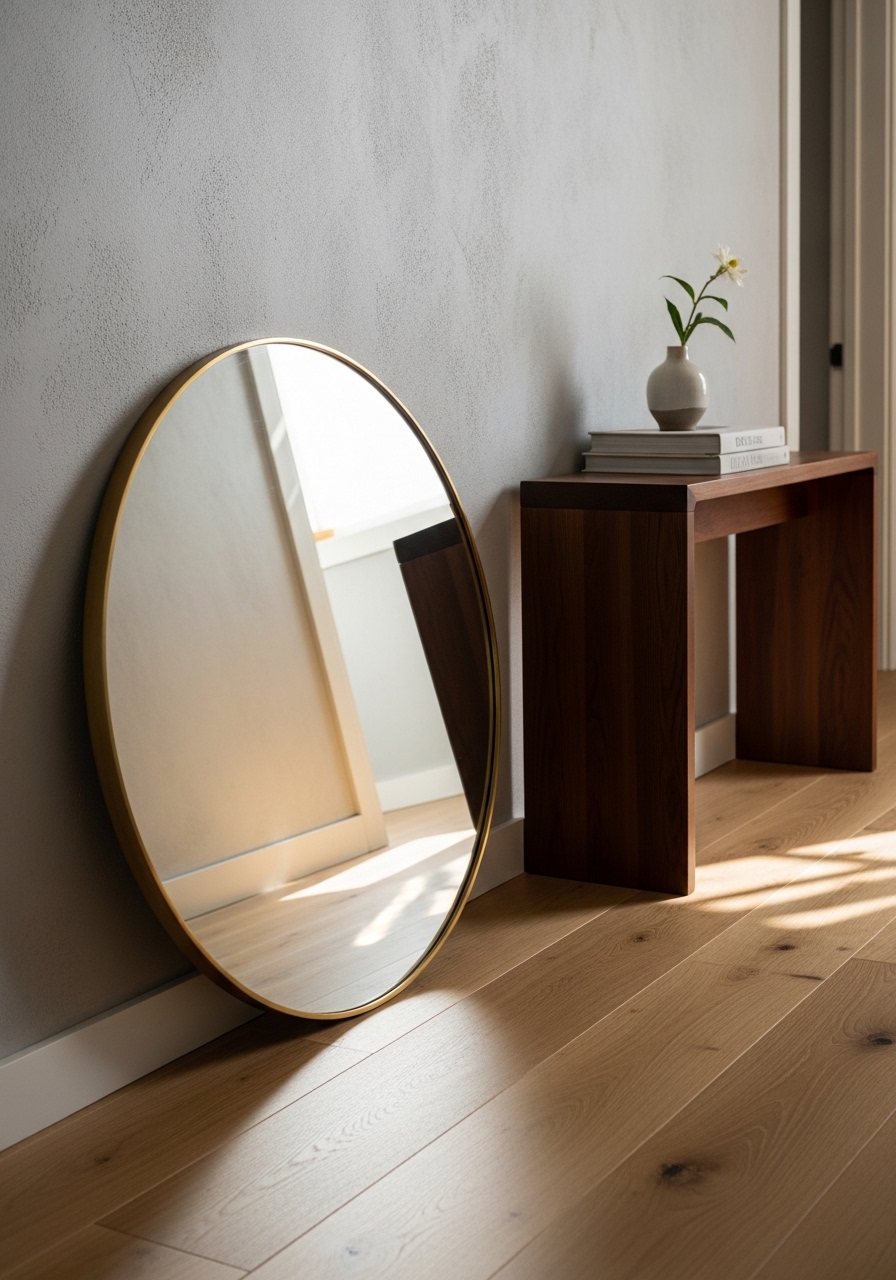 I leaned a 36-inch round mirror against a narrow wall. It reflects light and doubles visual space. Mirrors are especially good if your room has one window. Mistake to avoid: placing a mirror where it reflects clutter. Keep what it bounces back tidy for the best effect.