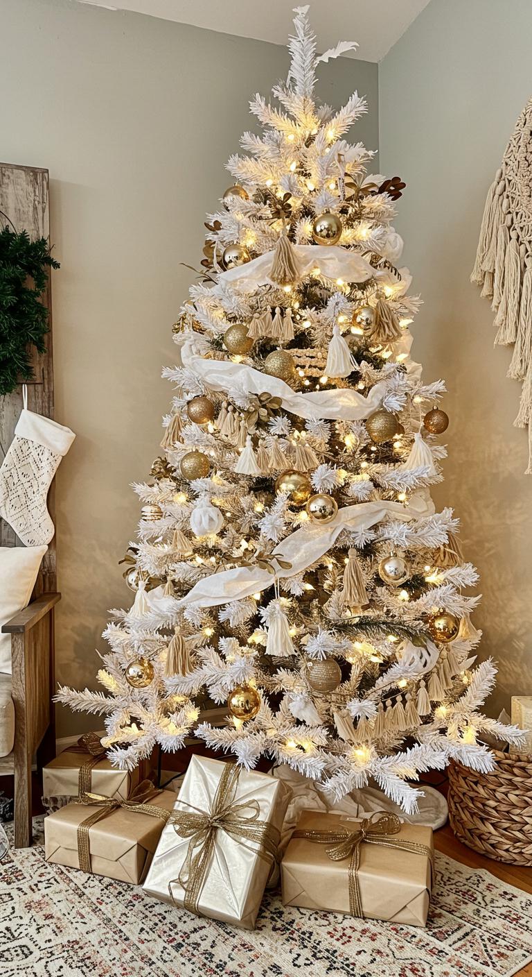 For those looking to infuse a free-spirited vibe into their holiday decor, a bohemian white and gold tree offers a delightful twist on traditional themes.