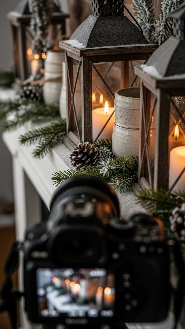 Place lanterns for a homely glow. Pair them with ceramics for texture. This builds a cozy atmosphere. For budget tips, use tea lights in jars. DIY by decorating jars with twine. Set them up simply. They’ll light up your evenings.