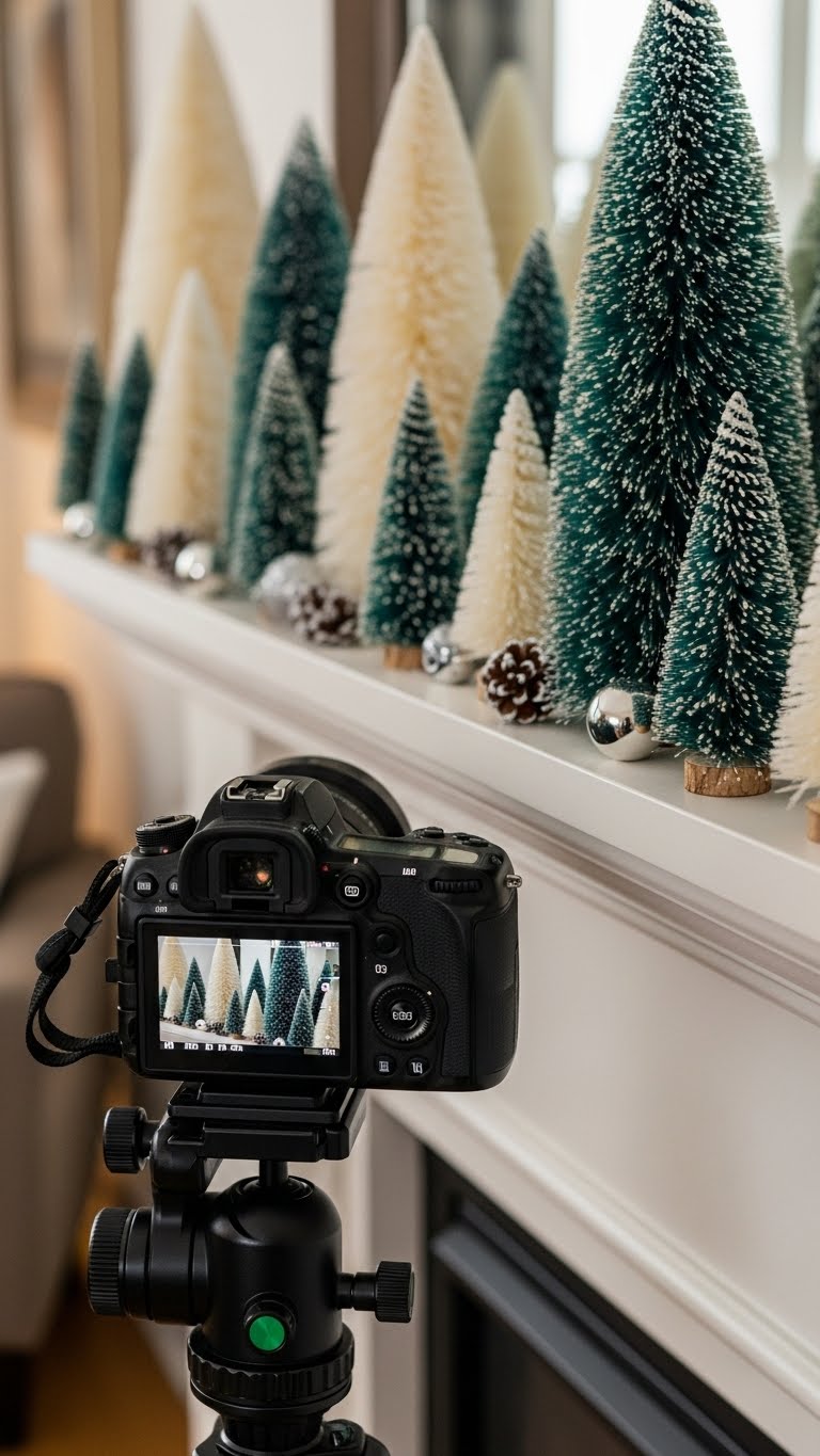 Set out bottle brush trees for whimsy. Use small ones in a group. They bring snowy charm. For budget fixes, buy a set online. DIY by fluffing them up. Place them on your mantel. It’s a fun addition.