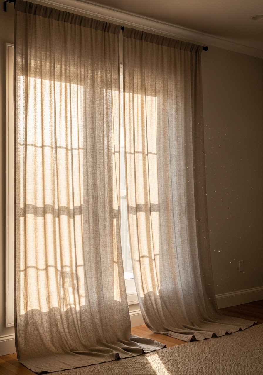 - Linen blend curtains 96-inch natural (~$40-70 per panel)