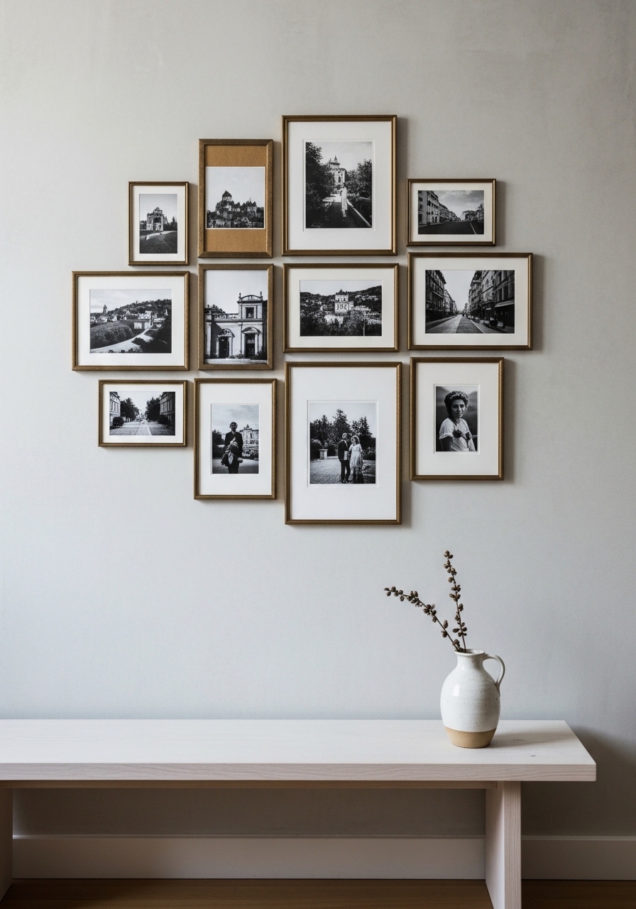 Minimal Gallery Wall with Brass Frames for a Collected Look