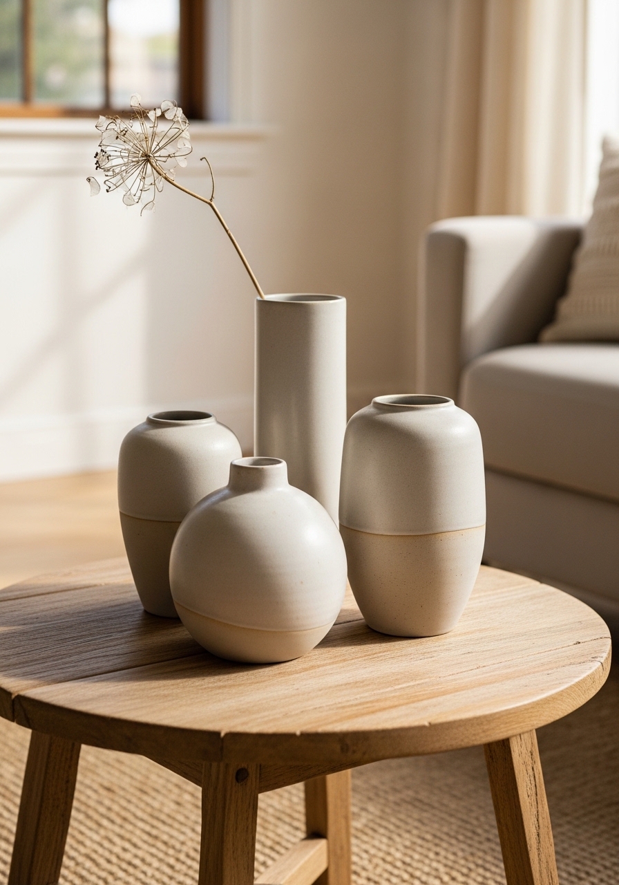 - Ceramic vases set of 3 neutral (~$30-60)