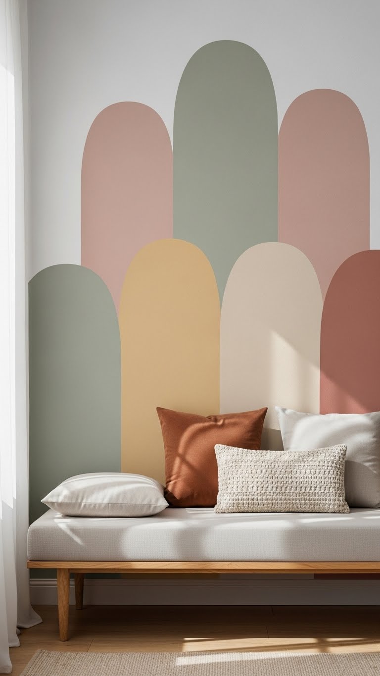 When you place soft, painted arches behind a sofa or bench, they instantly anchor the seating and add a gentle, sculptural backdrop without crowding the room.