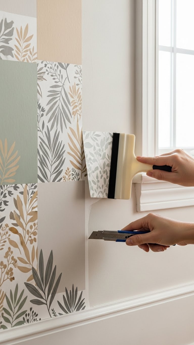 You’ll feel smooth matte paper glide across walls as you align peelable botanical or removable geometric panels. Work with a squeegee, trim edges, and breathe: you gain bold texture and calm colors now, and you can leave without a trace later.