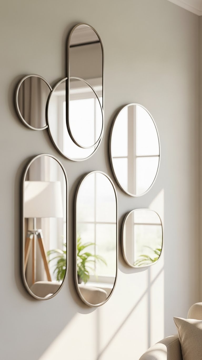 Touch, step back, tweak placement until reflections feel effortless. This simple, freeform installation expands sightlines and lifts mood without heavy décor.
