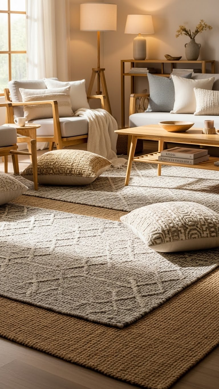 Pick a patterned rug to cover cold floors. Choose one with subtle botanicals in neutral shades. Lay it under your coffee table. This adds personality fast. Use an affordable option from online deals, under $50. Layer it over a plain mat for extra warmth. For DIY fun, add fringe to the edges with yarn. It takes minutes and looks polished. Place it in high-traffic spots like the entryway. This keeps things from feeling bare. Mix textures by pairing it with woven baskets. Your room gains interest without bold colors. Start small with a rug pad to protect floors. This tip fits small apartments too. Change it up each season by flipping it over. Enjoy how it makes walking around more pleasant.