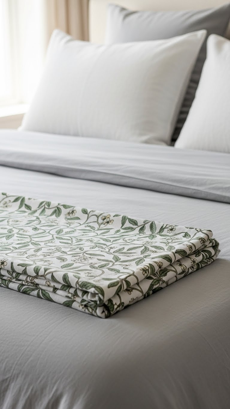 Drape a patterned throw on your bed. Choose leopard or botanicals in neutrals. Lay it across the end. Find one on sale for $15. For DIY, add patches to an old blanket. This adds fun without color. Use in living rooms too. Fold it neatly for daily use.
