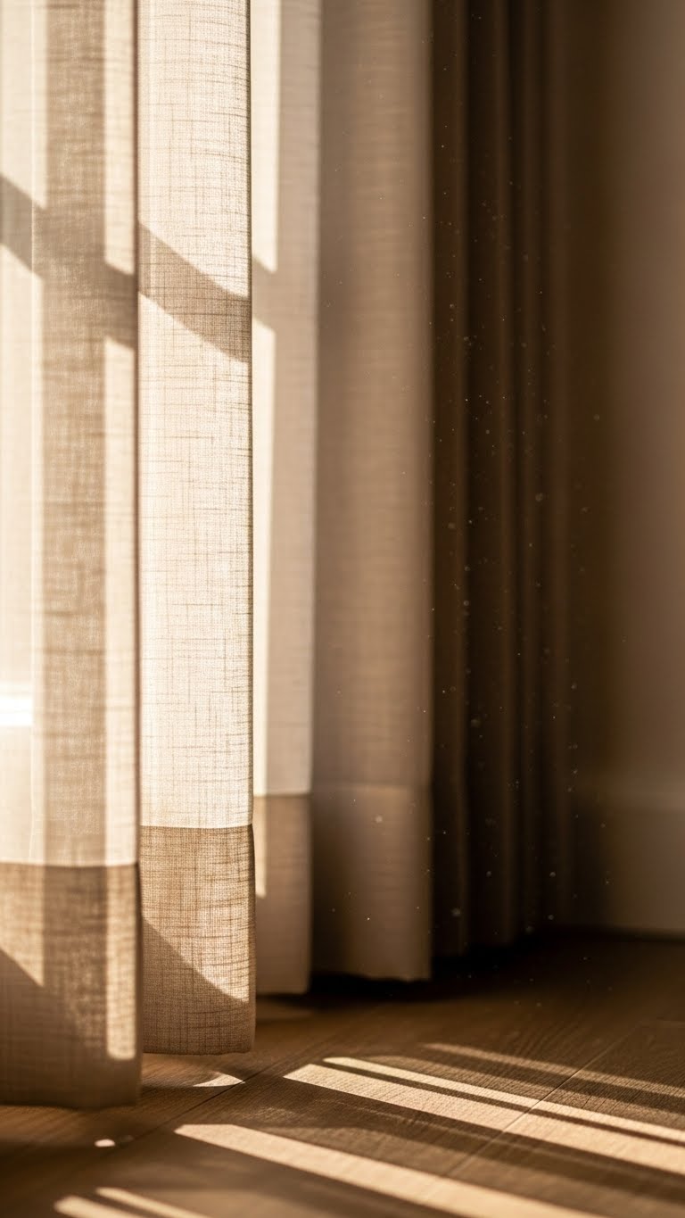 Hang beige curtains for rooms. They soften light. Install with clips. Buy affordable sets. For DIY, hem fabric pieces. This controls brightness. Adjust for seasons.