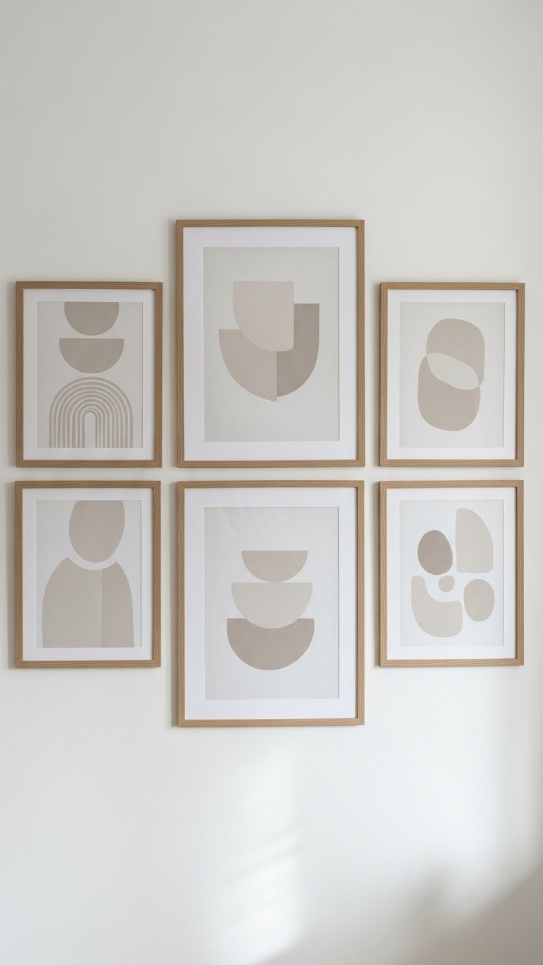 Frame neutral prints for walls. Choose abstract ones. Hang in groups. Get frames cheaply. For DIY, print photos. This personalizes space. Update as moods change.