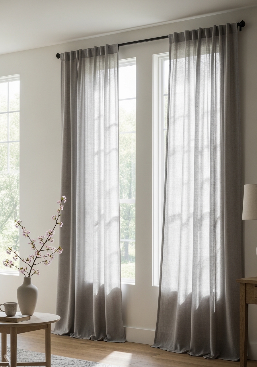 - Curtains should kiss or puddle: 96-inch linen panels for high ceilings.