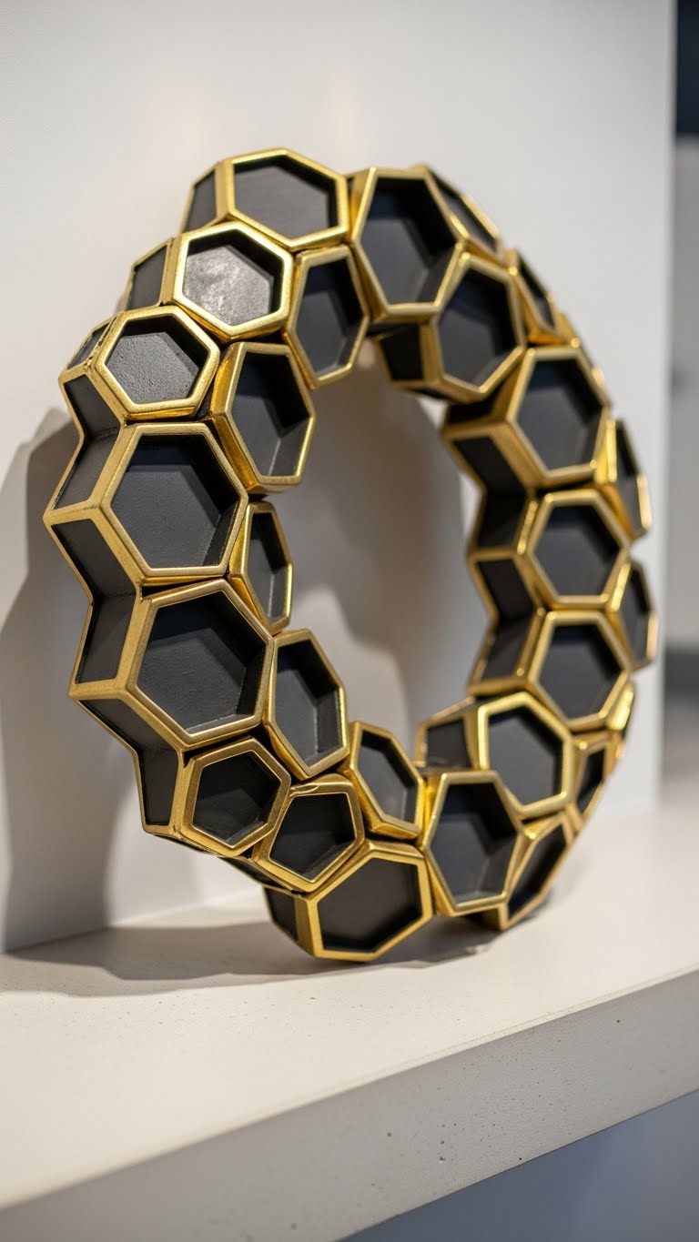 Buy honeycomb paper sheets online for cheap. Cut and glue them into a wreath shape. Add metallic tape for shine. Spend around $6 total. Begin with a template on paper. Assemble piece by piece. For New Year, top with a single star. This fits sleek rooms well. Repurpose the materials later. If glue is an issue, use staples. Set it on a table for events. Experiment with sizes for variety.
