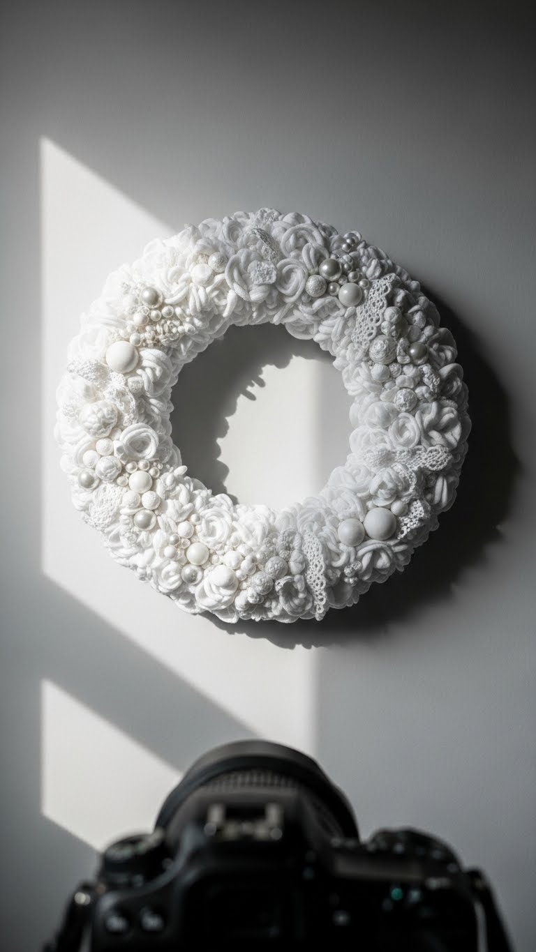 Collect white fabric scraps or buy cotton cheaply. Wrap them around a frame. Tuck in white beads for texture. Keep costs at $4 or less. Plan the layout on a flat surface. Wrap tightly for neatness. Add a white ribbon for New Year ties. Use it in bedrooms for calm. Save fabric from old clothes. Attach with safety pins if needed. Display where it stands out.