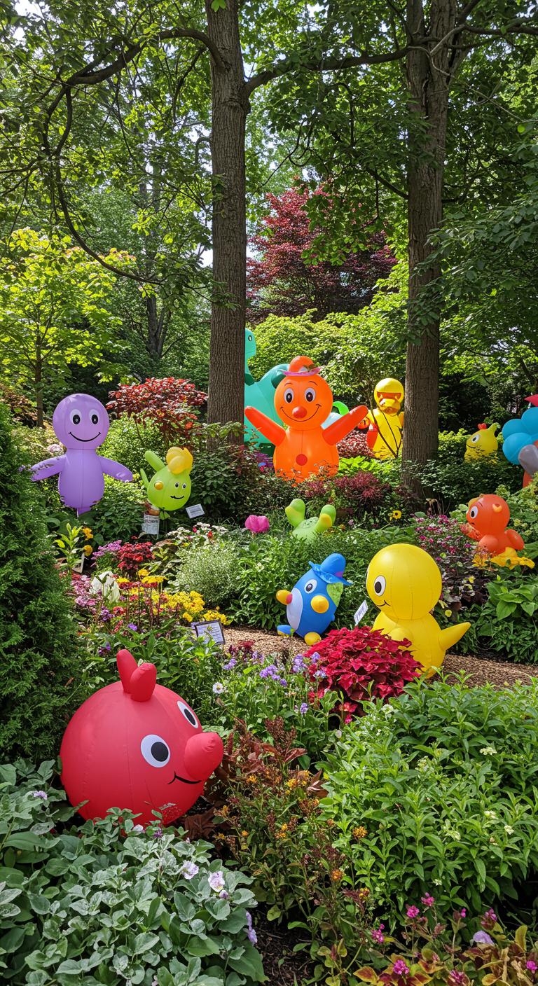 Inflatables bring instant whimsy to your garden while letting plants stay center stage, so pick shapes and sizes that complement beds, shrubs, and tree canopies rather than hide them.