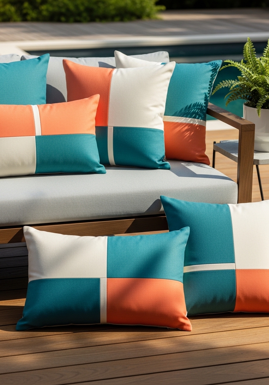 I added 20×20 color-block pillows in teal and coral to my neutral set. They cost $18–$25 each. I picked 20×20 outdoor pillow covers and inserts 20×20. Tip: use one bold color and one muted for balance. Mistake: too many bright hues at once.