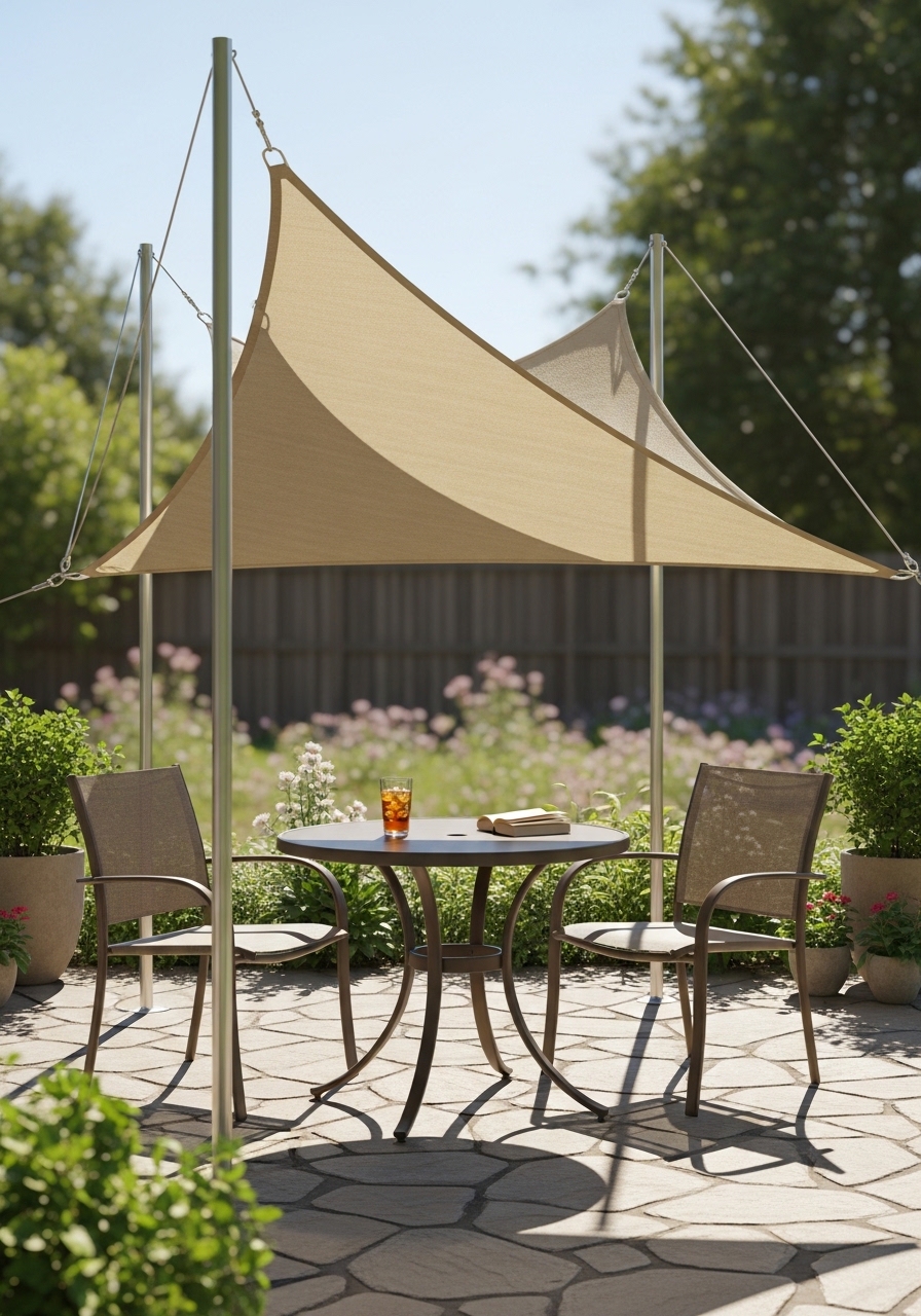 My retractable shade sail blocks midday sun without permanent structure. The 10×10 sail averages $120. I used 10×10 shade sail and galvanized turnbuckles. Tip: tension the sail diagonally for stability. Mistake: low-grade fabric that sags after rain.