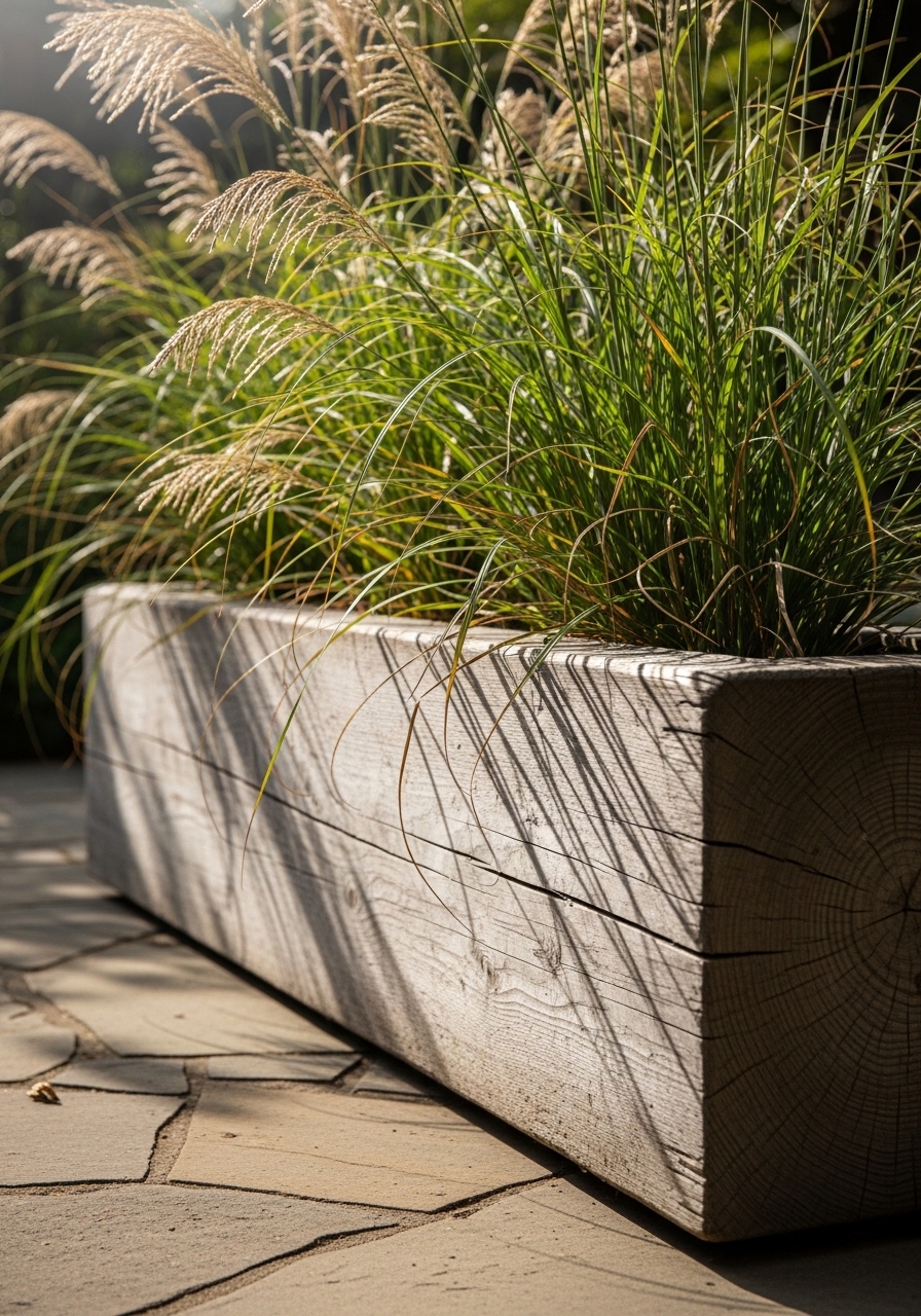 I placed a 6-foot cedar planter along my deck railing. I used Miscanthus sinensis 'Gracillimus' for height (5–6 ft mature). The planter I bought from Home Depot was 72 x 14 x 14 inches and cost about $180. I paired it with this cedar planter box and miscanthus grass plugs. Visually, the tall grasses create a soft screen that moves in the breeze. Styling tip: stagger plant heights in groups of three. Common mistake: planting too densely; roots need room to thrive.