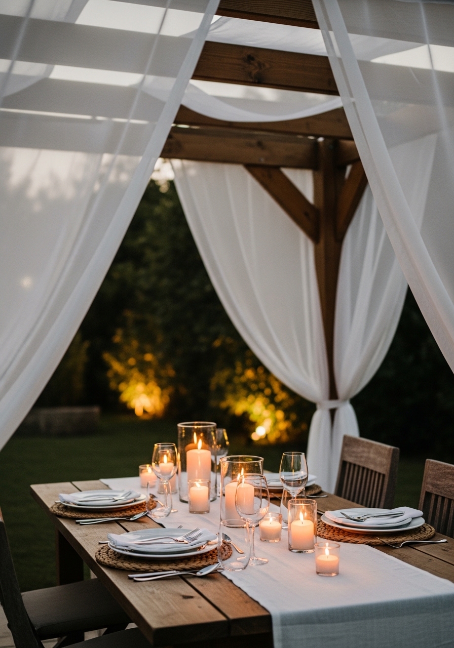 Pergola With Sheer Drapes For Intimate Dining