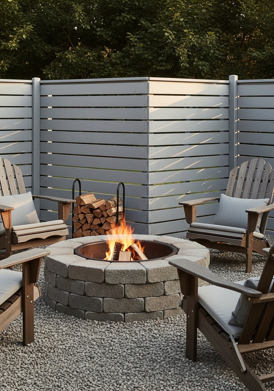 I repurposed pallets into a staggered wall behind my fire pit. It cost under $60. I sealed them with a clear outdoor coat. I linked wood pallet panels and outdoor wood sealer. The layered wood adds texture and blocks sightlines. Styling tip: leave small gaps for airflow and to avoid rot. Common mistake: using untreated pallets—choose heat-treated (HT) for safety.