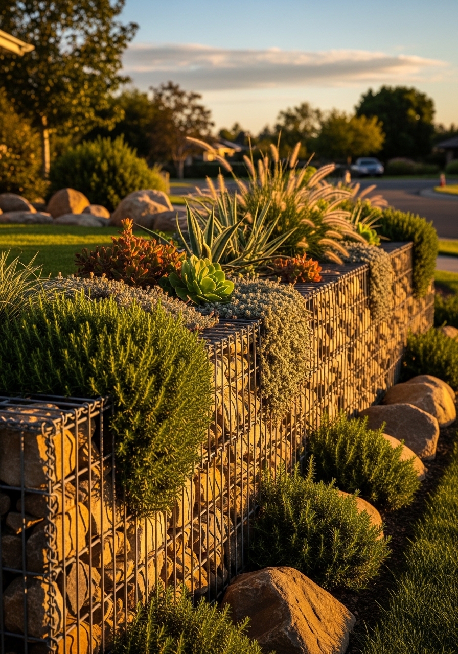 I built a 3 ft gabion wall as a partial visual barrier. The stone-filled cages cost about $400 total for a small length. I ordered gabion baskets 2x1x1 ft and crushed stone. The weight gives permanence. Styling tip: top with low plants for softening. Common mistake: using the wrong rock size—too small and the wall looks messy.