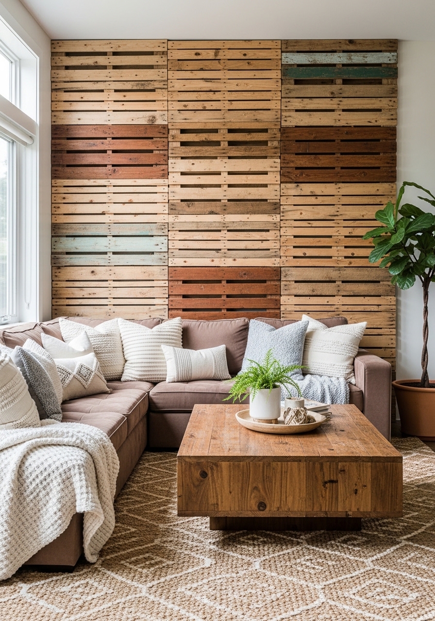 Stacked Wooden Pallet Wall For Budget Privacy