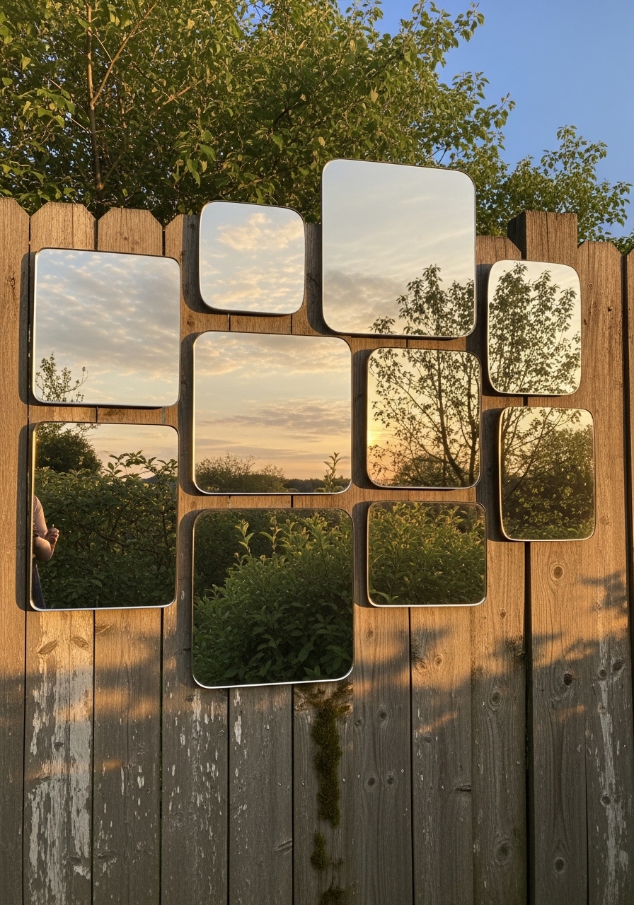 I hung three outdoor mirrors on my fence to reflect my garden and obscure a neighbor’s wall. I chose shatterproof, weatherproof mirrors—each 18 inches round for about $40 apiece. I linked outdoor round mirror 18 inch and mirror mounting strips. The reflected view tricks the eye and adds perceived space. Styling tip: stagger mirror heights to mimic window lines. Common mistake: installing where mirrors glare into neighbors’ windows—choose angles thoughtfully.