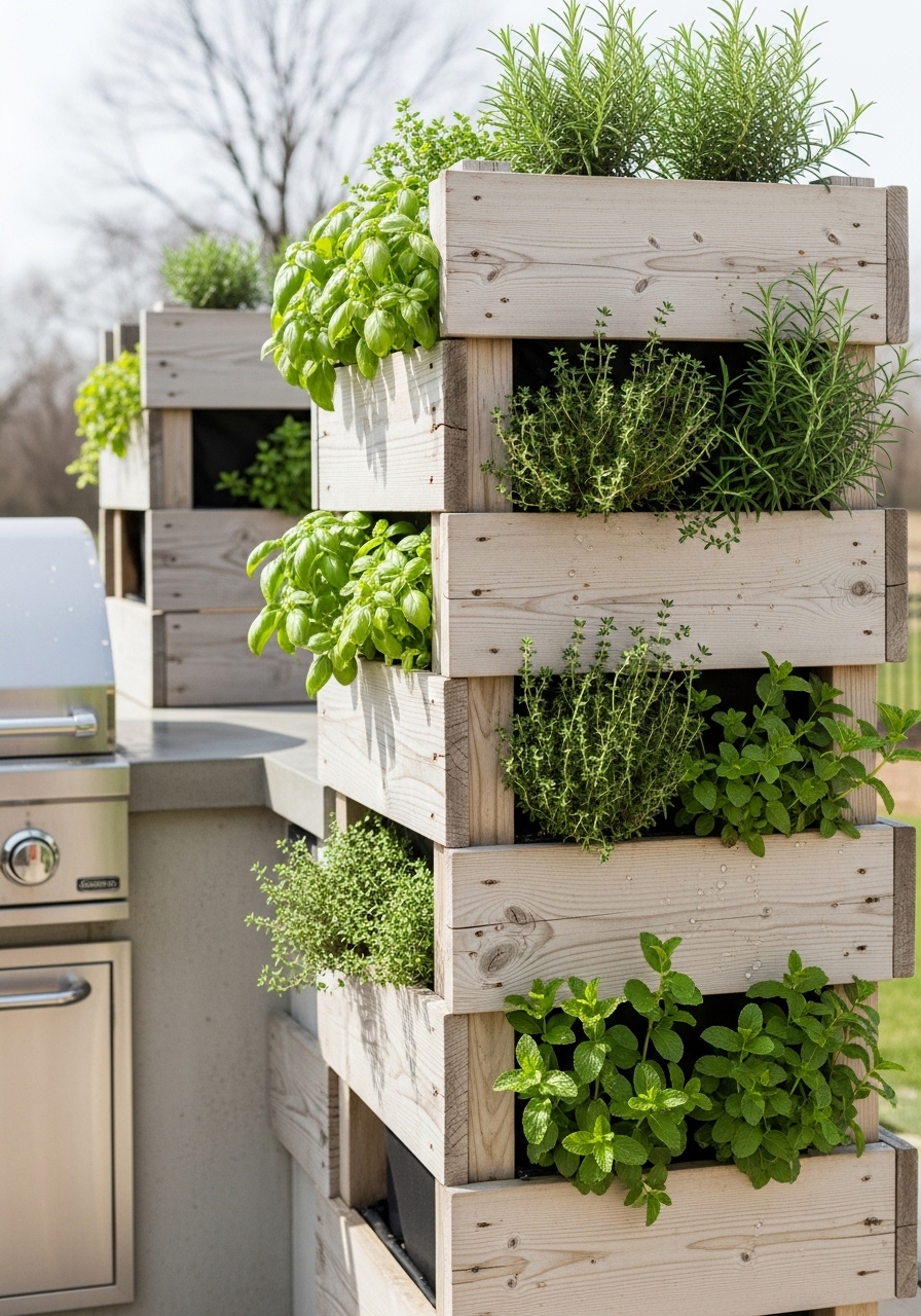 I installed stacked planter boxes and planted mint, rosemary, and sage. They smell great and block lower sightlines for dining privacy. The 4-box stack cost about $220. I used vertical wooden planter boxes 4 stack and herb starter pack. Styling tip: rotate herbs seasonally for color shifts. Common mistake: placing thirstier herbs in shallow boxes—check water needs.