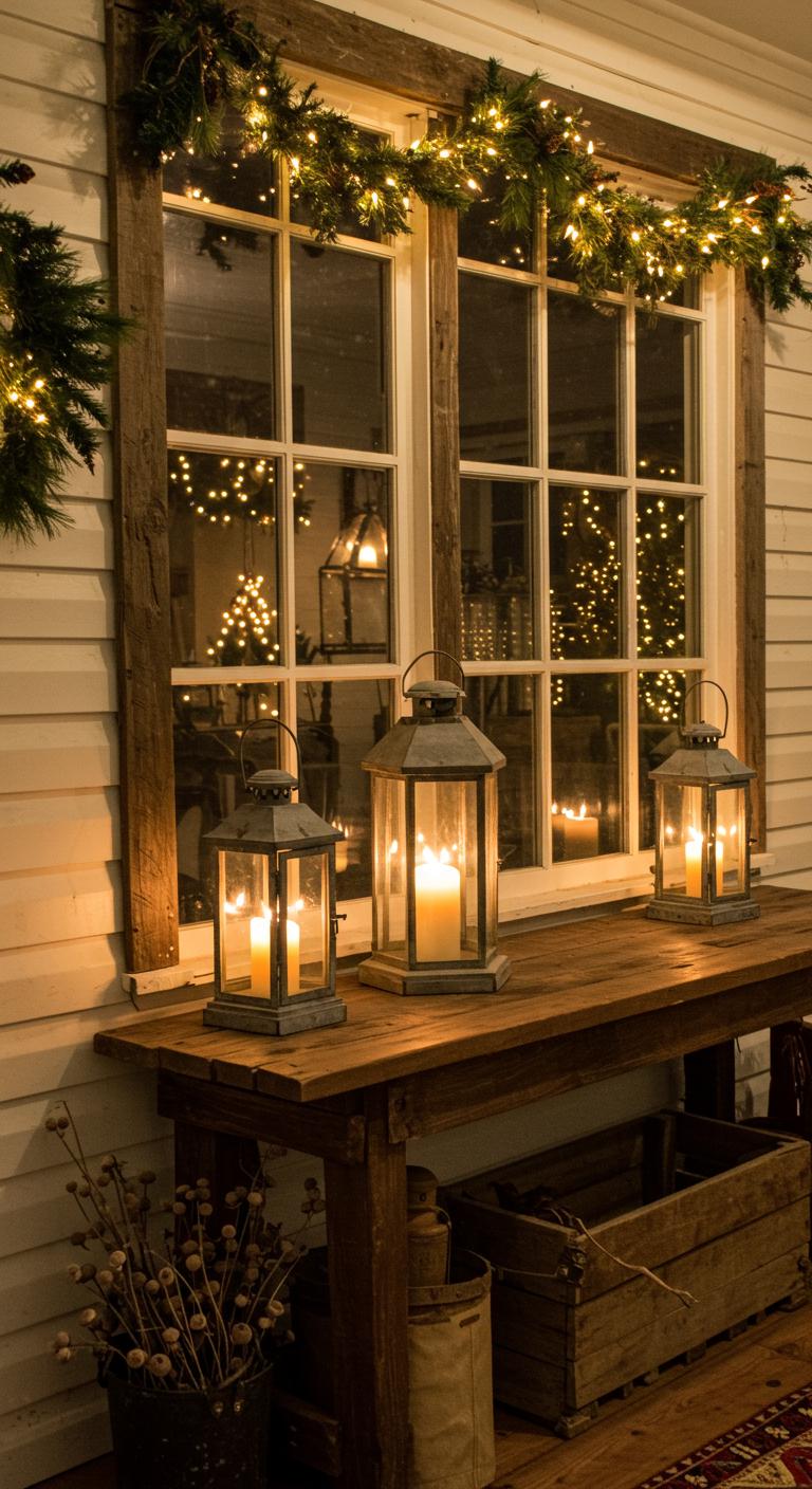 Add vintage lanterns, flickering softly, casting a golden glow across your space.