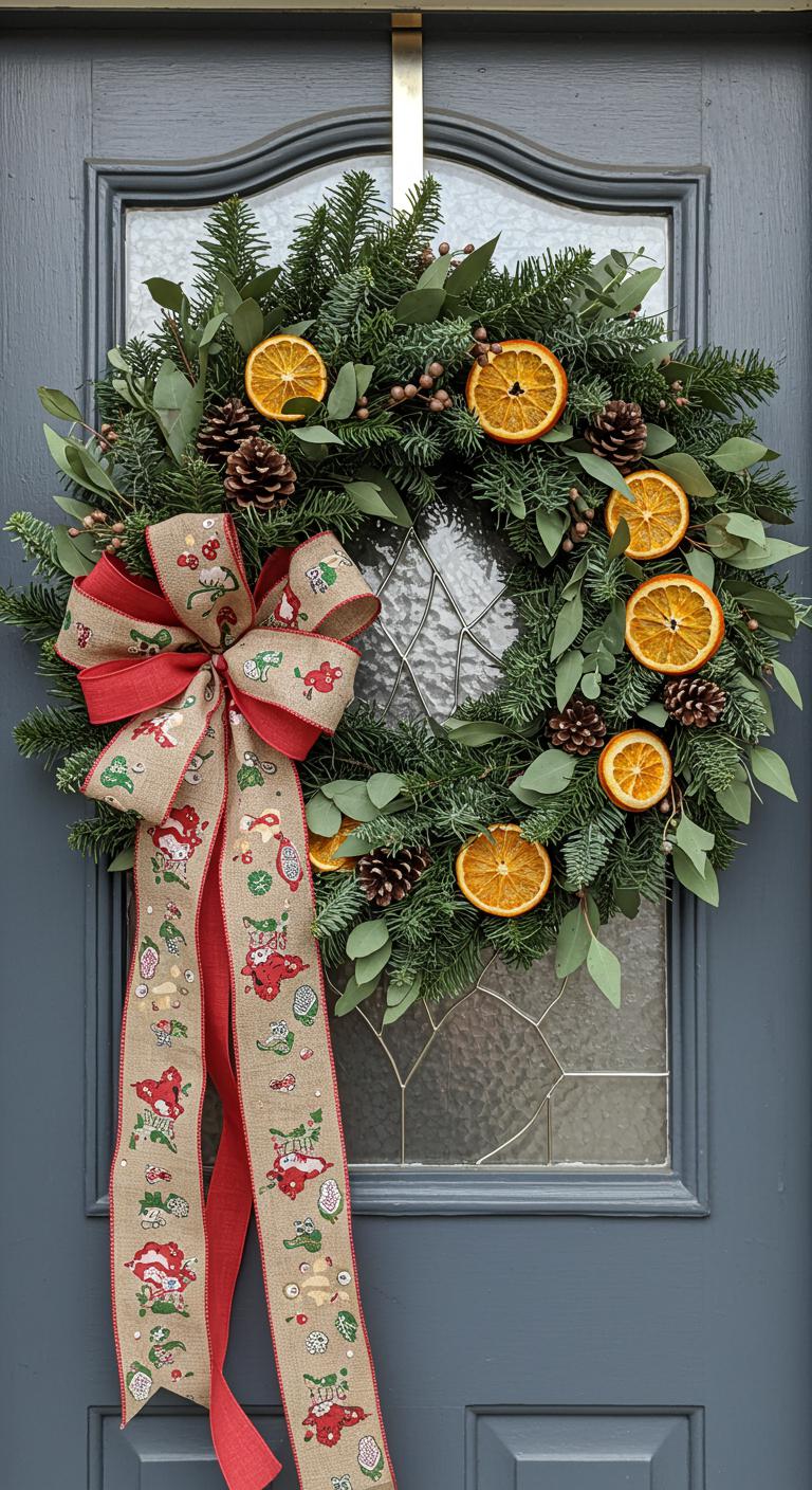Explore unique wreath making techniques using seasonal greenery options like eucalyptus, pine, or even dried oranges.