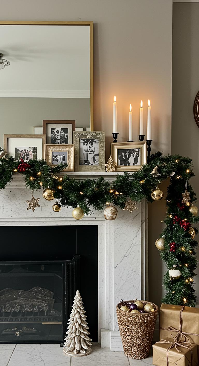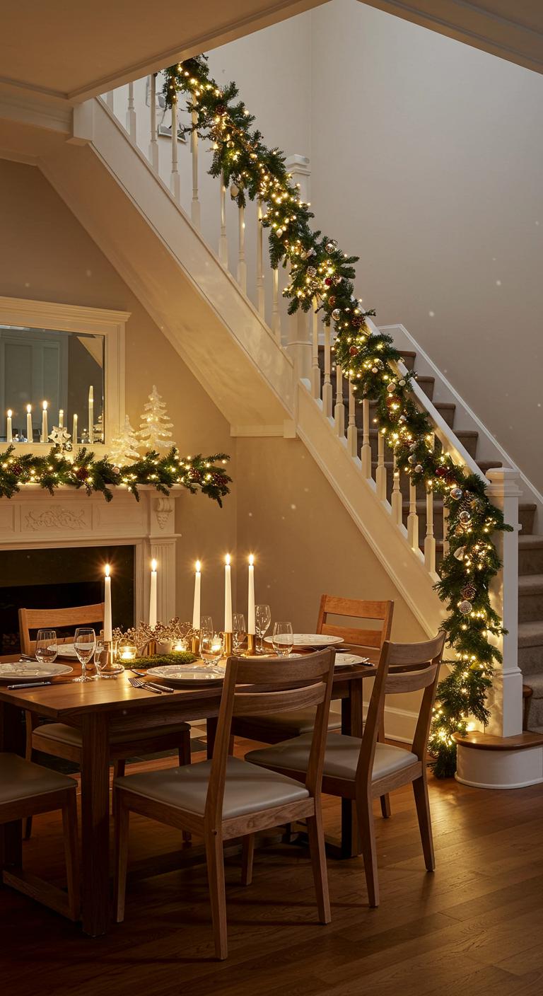 Embrace festive garland ideas, draping vibrant greens intertwined with ruby reds for a cozy touch.