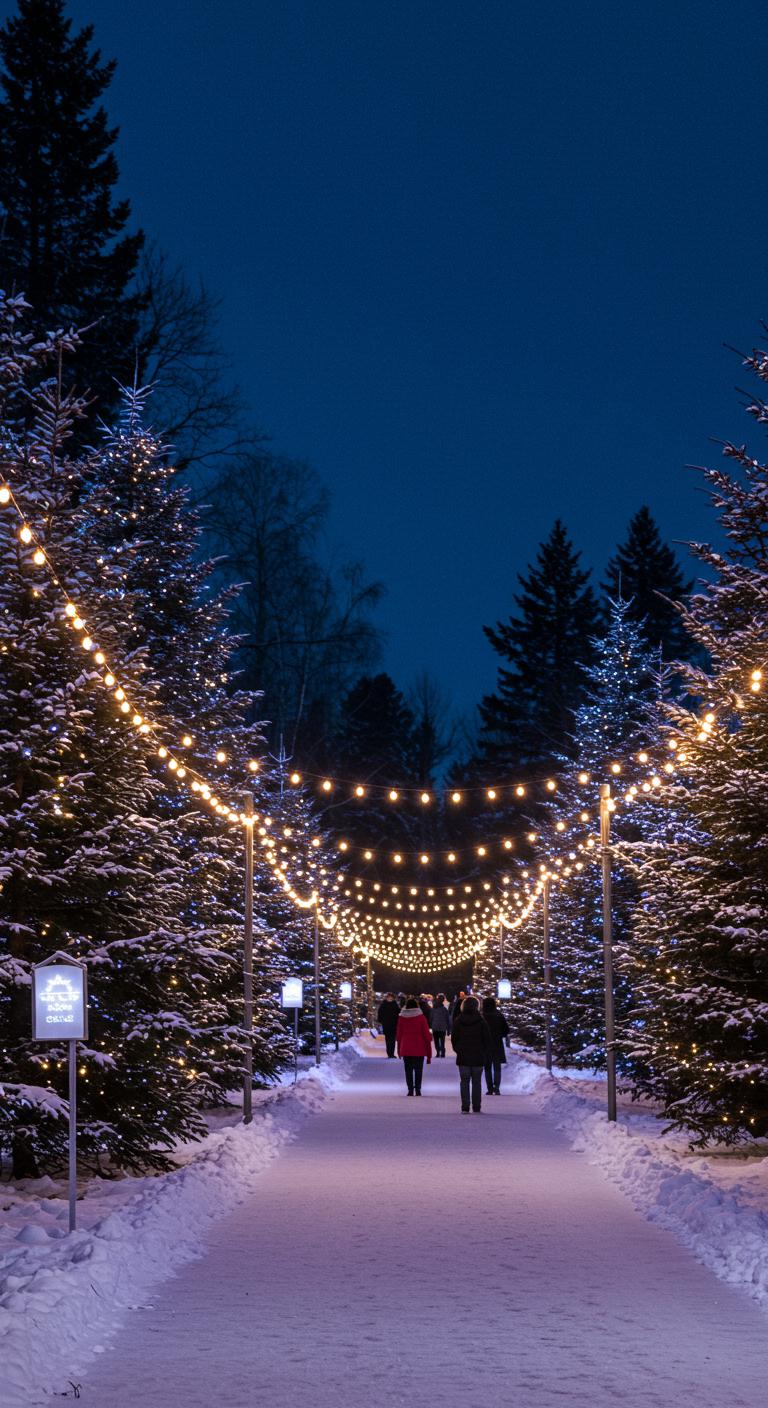 Adorn trees and bushes with twinkling lights, casting a magical glow against the night sky.