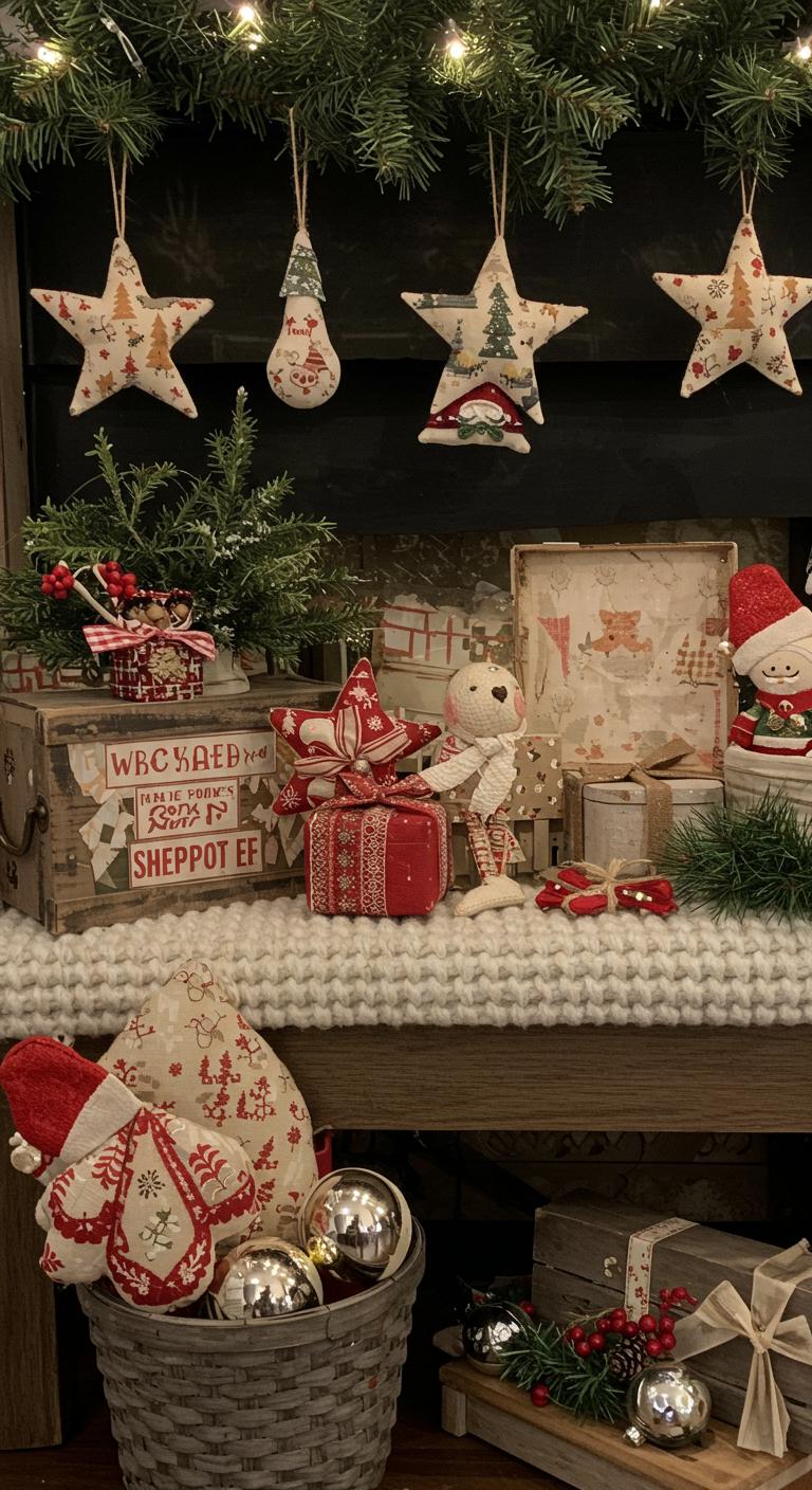 Transform thrifted finds into upcycled ornaments, craft repurposed decorations from vintage fabric, or use reclaimed wood for unique displays.