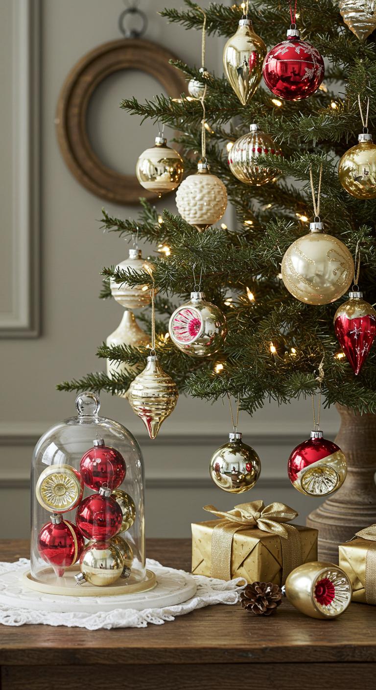 Create stunning vintage ornament arrangements that tell your family’s story, blending colors and textures for eye-catching nostalgic holiday displays.