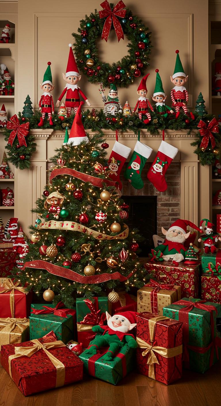 Add mischievous figurines and elf-themed stockings for a fun flair.