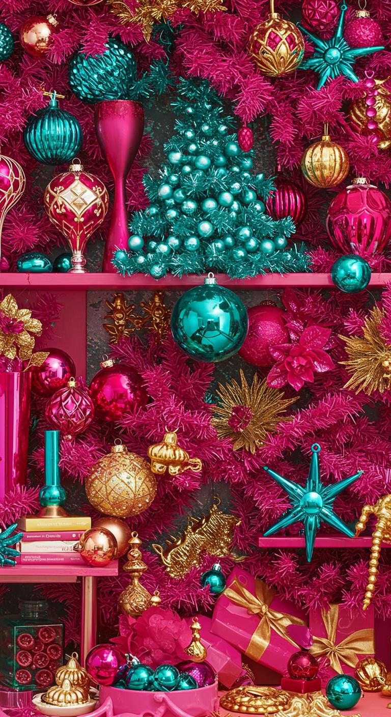 Enhance your decor with vibrant ornament displays that pop against your backdrop, creating a joyful atmosphere.