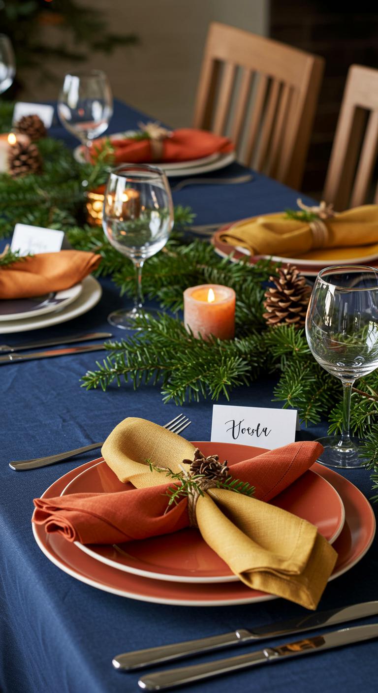 Embrace the art of festive napkin folding to add flair to your dining experience, while creative place cards can personalize each setting.
