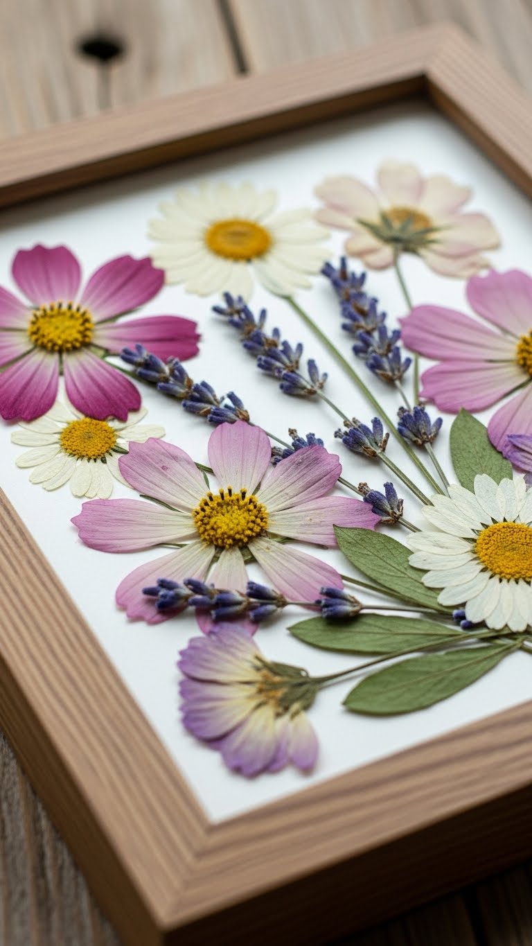 Pick wildflowers or cheap blooms from your yard. Press them between heavy books for a week. Once flat, place them in a thrifted frame. This setup costs about $5 total. Arrange the flowers in a pattern that suits your style. Use clear tape to secure them inside the glass. Hang with clips on a string for a renter-friendly option. It’s perfect for a romantic touch. Change the flowers with the seasons to keep it fresh. This project adds a garden feel without any upkeep. Try adding leaves for more texture. You’ll love how it brightens a dull spot. Do this on a lazy afternoon for quick results.