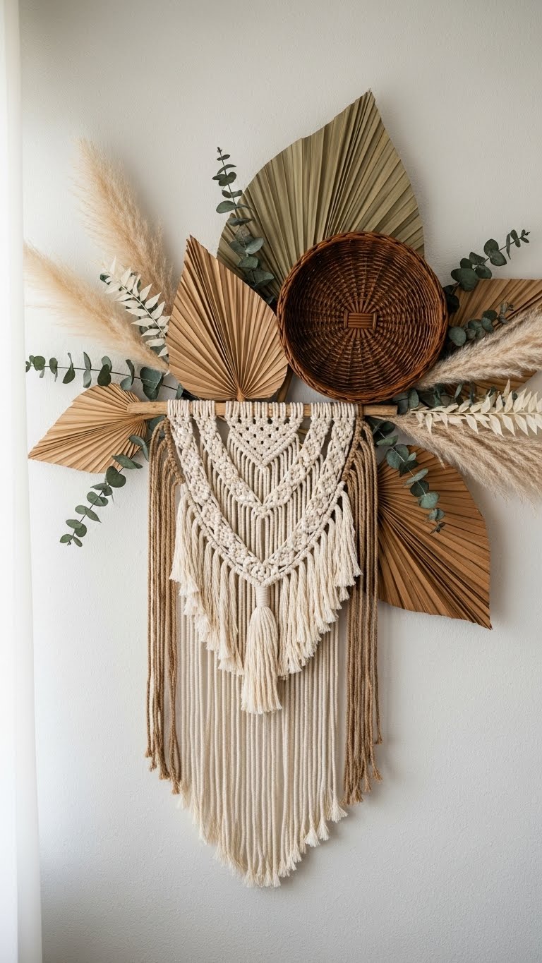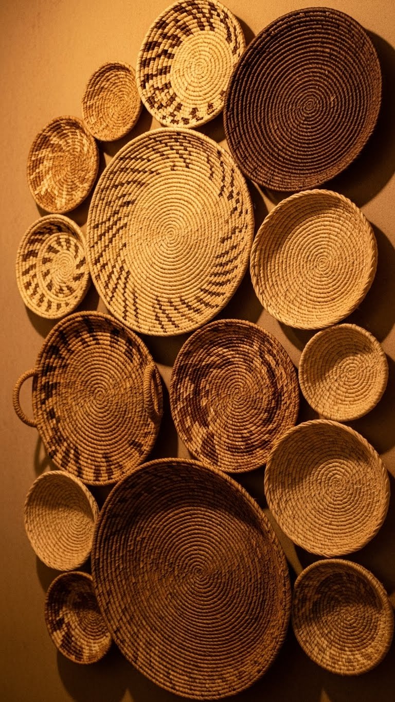 Find affordable baskets at thrift shops for $5 each. Weave in some dried twigs for added flair. Mount them using hooks that won’t harm the wall. Arrange in a cluster for a boho effect. This display costs way less than store-bought versions. Fill baskets with small plants or keepsakes. It’s ideal for renters who want style without commitment. Switch contents with the seasons for variety. The setup is straightforward and quick. Use baskets of different sizes to build depth. Your wall will gain texture and warmth fast. Try this for a cozy, lived-in look.