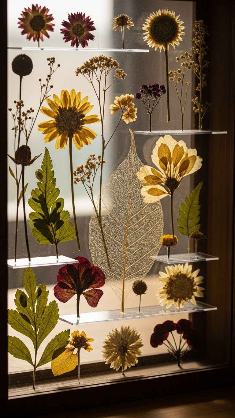 Gather dried plants from your collection. Place in a deep frame. Secure with glue. Hang on a nail or hook. Total cost is around $10. Layer for added depth. This adds dimension to flat walls. Try different plant types. The project is straightforward. Finish and enjoy the effect.