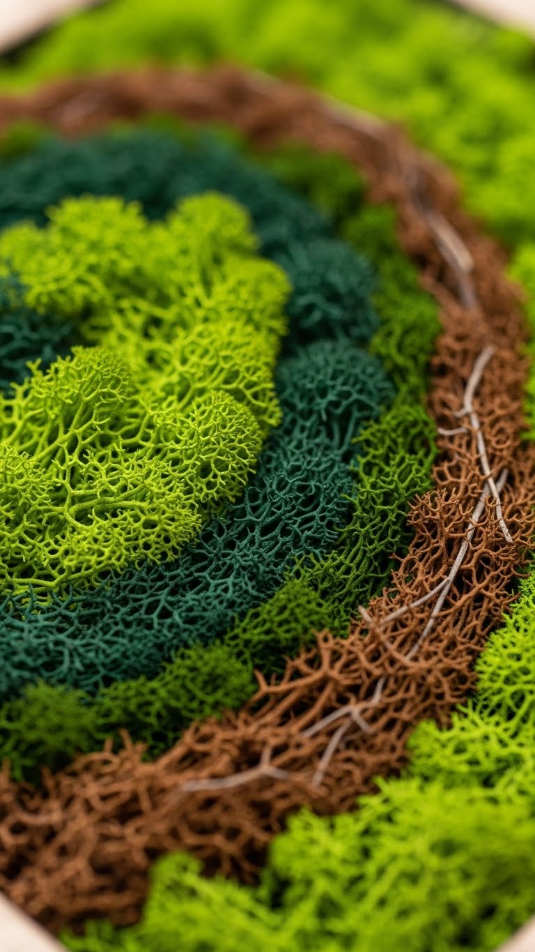 Get preserved moss from a craft store—it’s under $15 a pack. Glue it onto a wooden board for a base. Let it dry fully before hanging. This no-fuss option thrives in low-light areas. Attach with double-sided tape to skip nails. Layer different moss types for visual interest. It brings nature inside without watering. Place it in a dark hallway for an instant lift. The whole thing takes 30 minutes to assemble. Use what you have at home for the backing. This art stays vibrant year-round. Experiment with shapes to fit your wall. You’ll enjoy the calm vibe it creates.